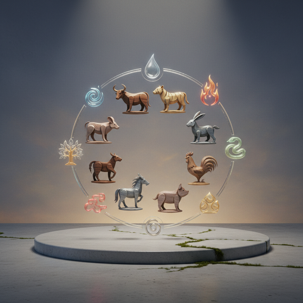 Be gyvūno simbolio, kiekvieniems metams taip pat priskiriamas vienas iš penkių elementų – medis, ugnis, žemė, metalas arba vanduo. Ši kombinacija sukuria dar gilesnį asmenybės portretą.