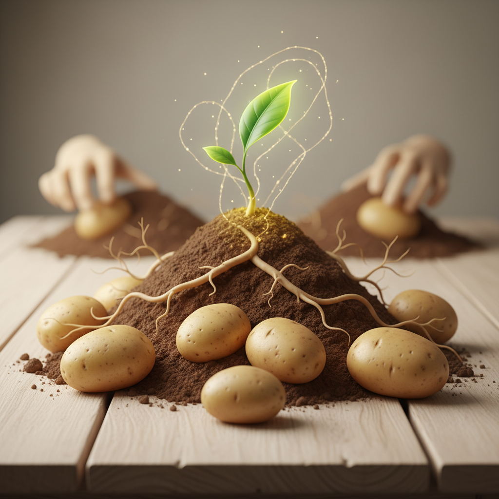 Bulvės lauke ar darže rodo augimo procesą. Tai gali simbolizuoti naujus projektus, asmeninį brendimą arba santykių stiprėjimą.