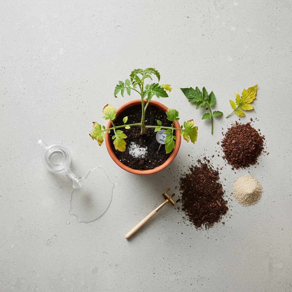 Jei pomidorai auga vazone, patikrinkite, ar jis turi pakankamai drenažo angų. Prasta vandens nutekėjimo sistema yra viena dažniausių perlaistymo priežasčių. Atvirame grunte taip pat gali būti naudinga šiek tiek pakelti lysvę arba pridėti daugiau smėlio bei komposto.