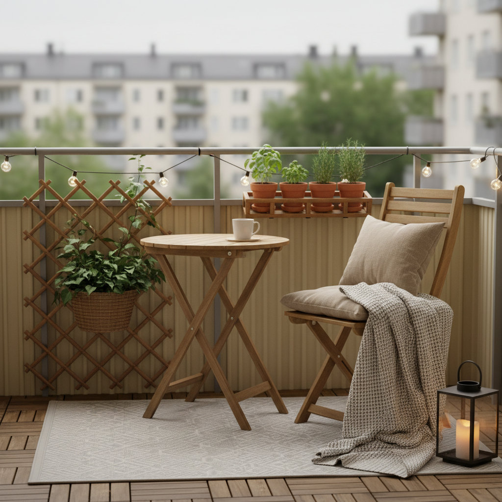 Nors mažai erdvei nereikia daug baldų, investuoti į kokybę visada verta. Jei jūsų terasa visiškai atvira lietui ir sniegui, rinkitės aliuminio konstrukcijas, kokybišką sintetinį rataną arba tikmedį, kuris natūraliai atsparus drėgmei. Pigesni plastikiniai ar neapdoroto medžio baldai greitai praras prekinę išvaizdą ir ilgainiui jums kainuos brangiau, nes teks juos nuolat keisti. Svarbiausia – įsigykite neperšlampamus baldų uždangalus, kurie prailgins net ir brangiausių baldų tarnavimo laiką.