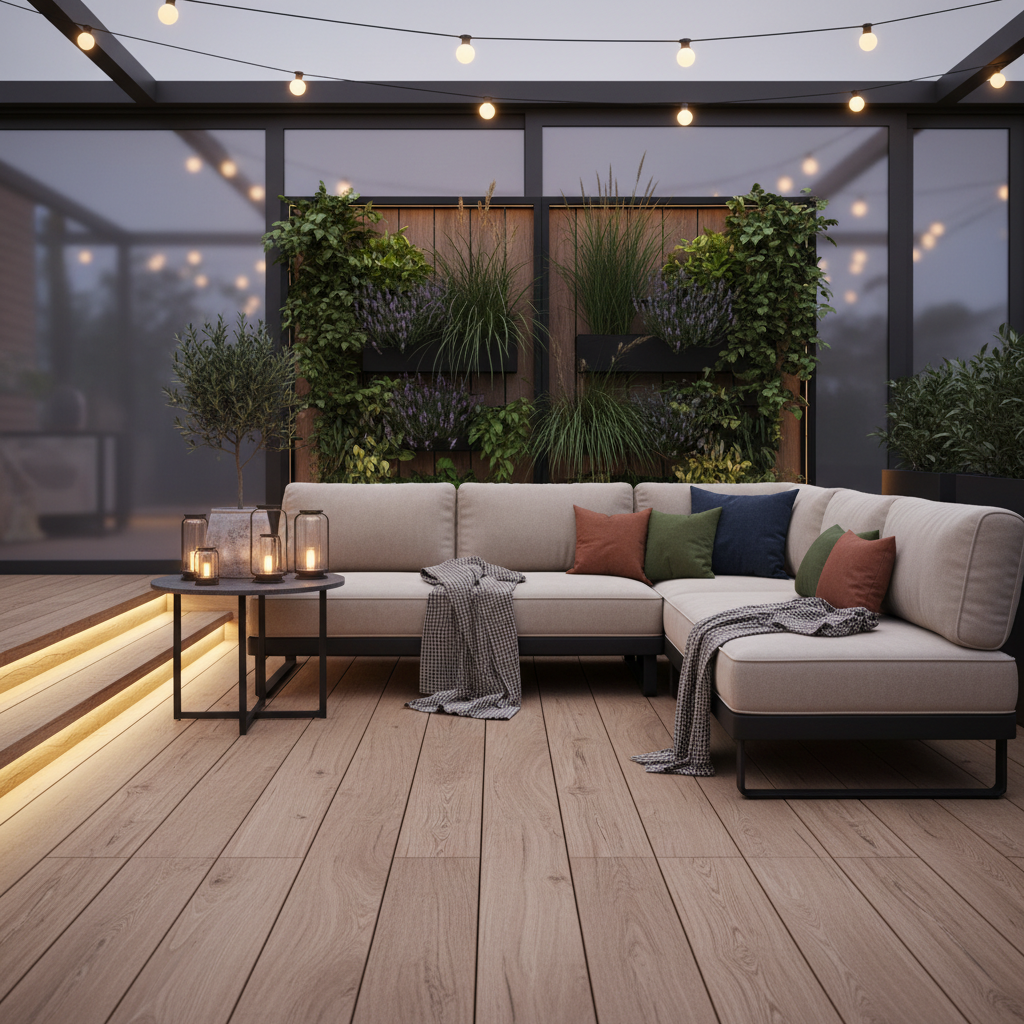 Šio sezono lauko terasų mados aiškiai rodo, kad natūrali mediena išlieka neabejotina lydere. Ąžuolas, maumedis, termiškai apdorota pušis ar bambukas suteikia terasai ne tik solidumo, bet ir šilumos jausmą. Daugelyje įkvepiančių nuotraukų galima pastebėti, kad medinės dangos dažnai derinamos su neutraliomis spalvomis arba subtiliais kontrastais.